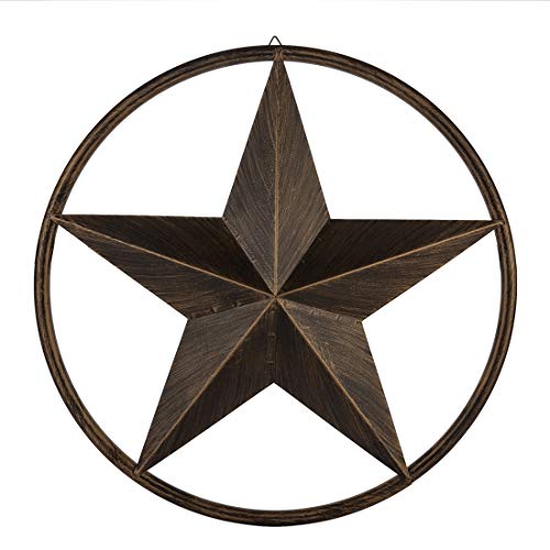 EBEI 24" Rustic Metal Barn Star Circle Dark Brown Texas Lone Star Wall Decor Art Western Home Wall Decor?