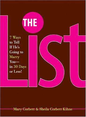 The List: 7 Ways to Tell If He's Going to Marry You--in 30 Days or Less! https://www.amazon.com/dp/B001GQ3DVU/ref=cm_sw_r_cp_api_glc_fabc_D6KRW2NZRGB23YJSVQTE