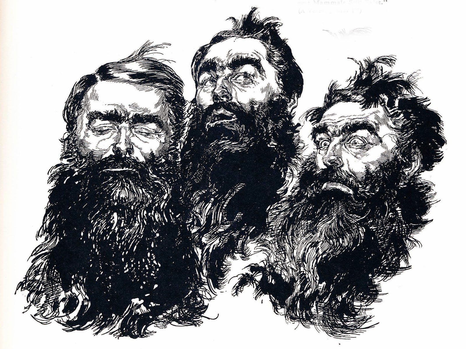 I think you were successful getting different textures, so nice job. As general advice I would say try to leave more white areas for contrast. This requires a lot of restraint, especially when drawing dark things like leather and fur and sunburned, wrinkly dudes but the limitations of ink demand it. This may mean you have to invent a strong light source and imply things without actually stating them.