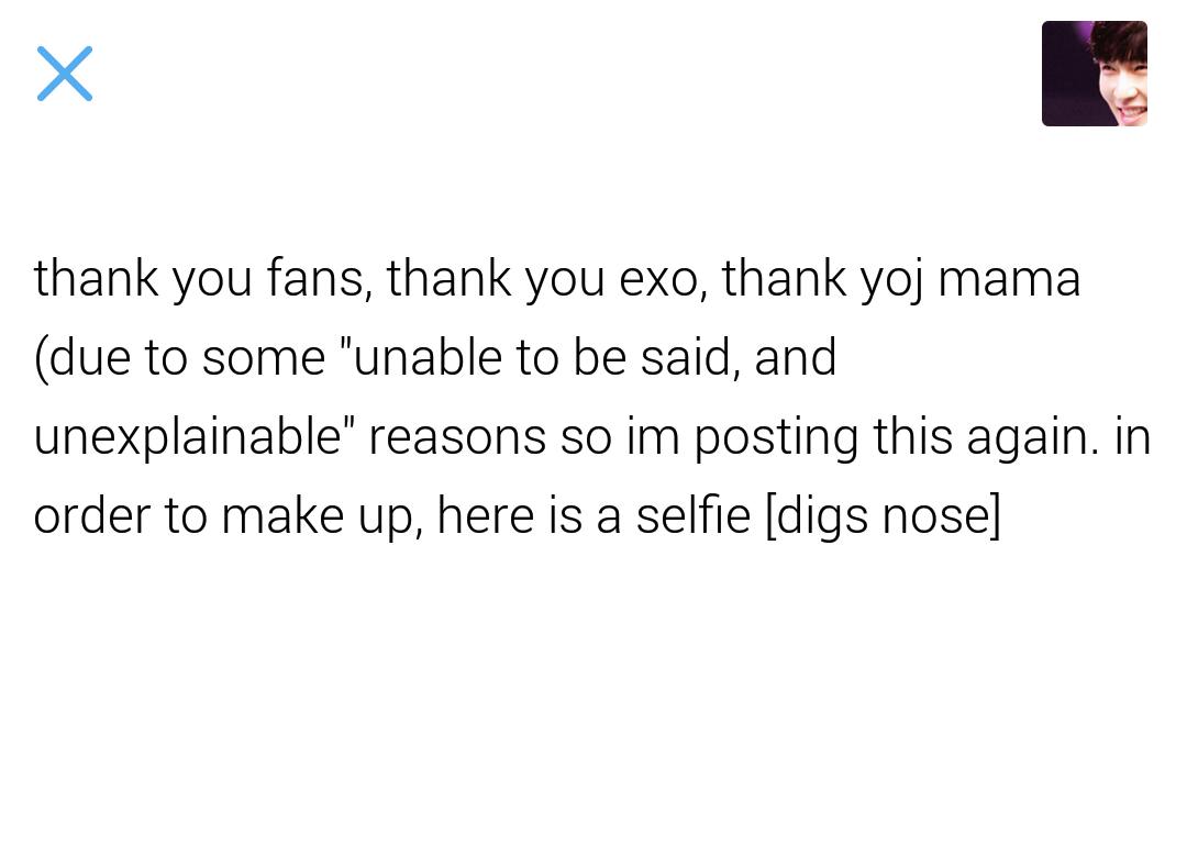 Translation Image. I love that he included a consolation selfie due to the re-post.